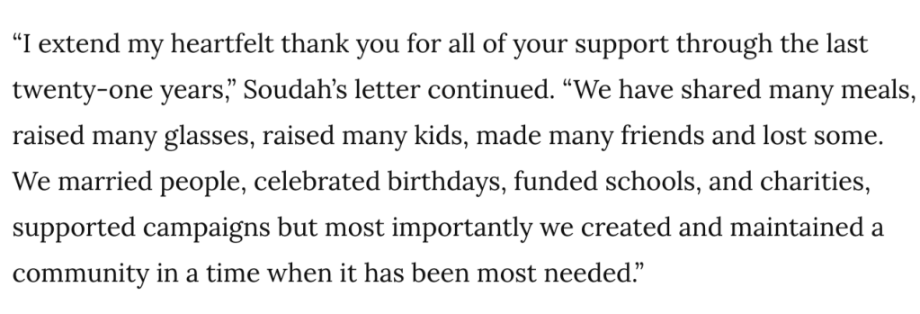 The outpouring of love from the community isn’t surprising. You expect warm and fuzzies when a local staple says farewell.